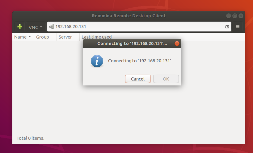 Now, from any VNC client, try to connect to your CentOS 8 machine.