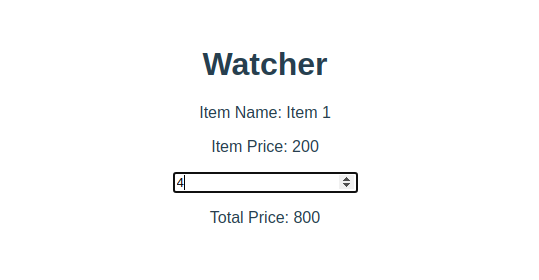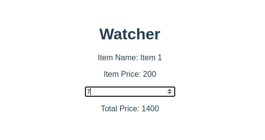 Now, we want to change the total price on the change of “itemQuantity” like whenever the user changes the quantity using the input field. The Total Price should get changed. For that purpose, we will have to watch the “itemQuantity” and calculate the total price whenever the “itemQuantity” property gets changed.