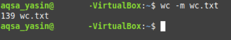 Here, you should replace File with the name of the file whose character count and name you want to be displayed on your terminal. We have replaced it with wc.txt, i.e., the name of our dummy file.