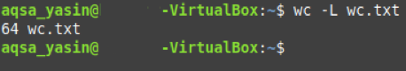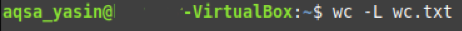 Here, you should replace File with the name of the file whose longest line’s character count and name you want to be displayed on your terminal. We have replaced it with wc.txt, i.e., the name of our dummy file.