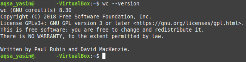 To check the version of the “wc” command installed on our system, we have shown the output of the above-mentioned command in the image below: