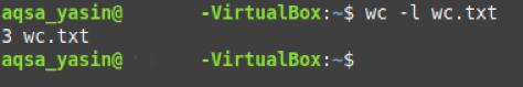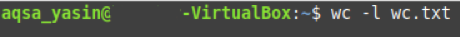 Here, you should replace the File with the name of the file whose line count and name you want to be displayed on your terminal. We have replaced it with wc.txt, i.e., the name of our dummy file.