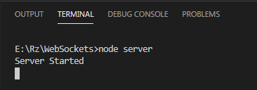 The first line is used to import the Node.js WebSocket module. Using this module, in the next line, we create our WebSocket server, which is listening on port 8080. The console.log() line is simply there to let us know that the Server has started. You will see this appear inside your terminal when you run the following command in the terminal: