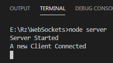 After starting your server, open the directory in which your index.html file is present, and double-click on it to open it in your browser. You will see the following message appear in the terminal stating that a client has connected: