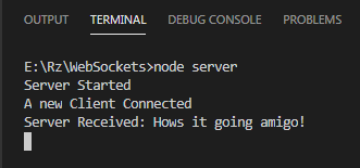 Finally, the wss.on (‘message’) is for the server to receive the message from the client. For confirmation, the server sends this message back to the client in the last line.