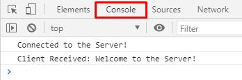 You can also check the messages sent from the server to the client by pressing the right-click button and then opening the Inspect window. In this window, click the Console section, and you will be able to see the messages sent from the server.