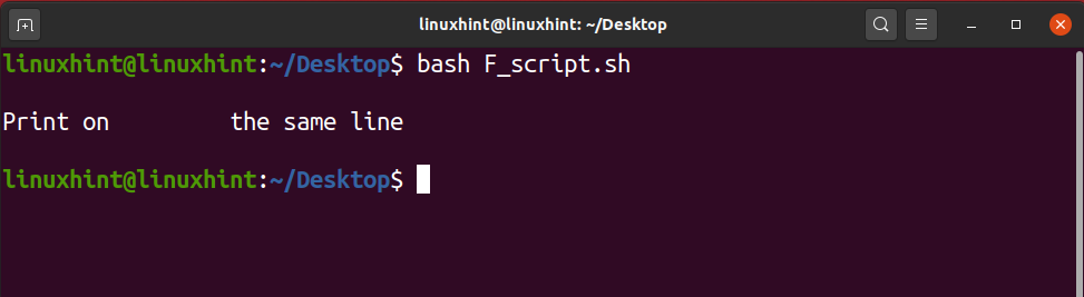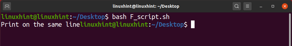 If we use the ‘-n’ flag with echo then it prints on the same line.