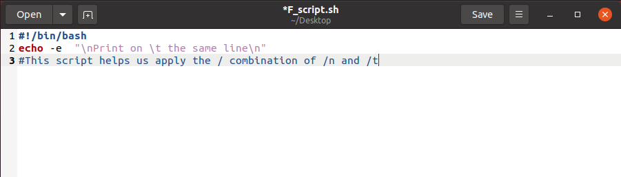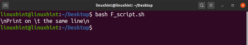 However, if we use the flag ‘-e’, then it all not only goes away but it also applies the \n and \t and you could see the changes in the output below: