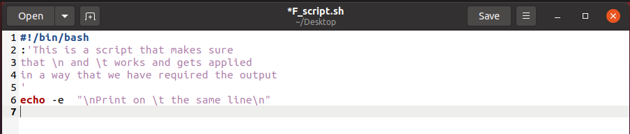 When we talk about the echo command, it is simply used to print out pretty much everything that you want to print out as long as it is written inside the quotes. Normally when you run an echo command without any flag it leaves a line then prints out the output. For example, if we have a script: