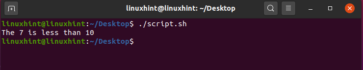 The if statement only evaluates the given condition, if the given condition is true, then the statements or commands inside the if block is executed, otherwise the program is terminated. In bash, if the condition starts with the if keyword and ends with the fi keyword. The then keyword is used to define the block of statements or commands which execute when a certain condition is true. Let’s declare a variable and use the if condition to evaluate the value of the variable whether it is greater than 10 or not. The -gt is used to evaluate the greater than condition whereas, the -lt is used to evaluate the less than condition.