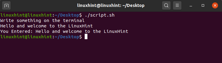 The Bash gives the liberty to the user to enter some string value or data on the terminal. The user entered string or data can be read from the terminal, it can be stored in the file, and can be printed on the terminal. In the Bash file, the input from the user can be read using the read keyword and we store it in a variable. The variable content can be displayed on the terminal by using the echo command.