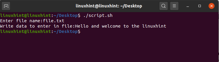 Now finally we have reached a mark where we can run the bash script. To run your bash script, you need to make sure that you are in the present working directory where your script resides. It’s not mandatory but that way it’s easy as you don’t have to write the whole path. Once you have done it, now go ahead and write in your terminal “./nameofscript.sh”. In our case, the name of the script is ‘script.sh’, so we would write: