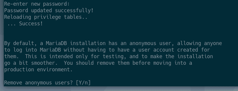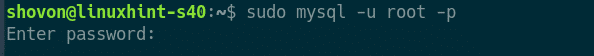 Now, type in the MariaDB root password you’ve already set and press <Enter>.