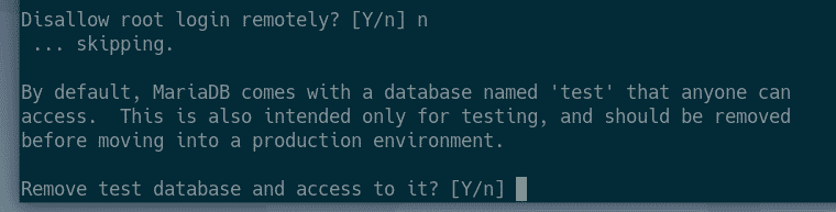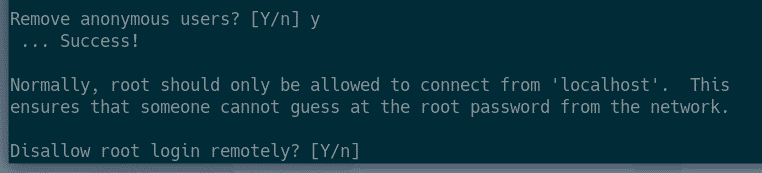 If you don’t want to allow root login remotely, press Y. Otherwise, press N. Then, press <Enter>.