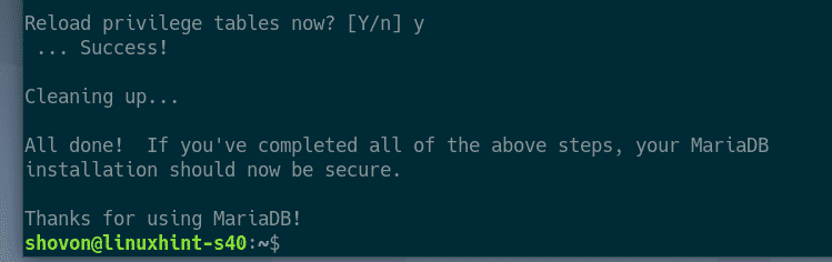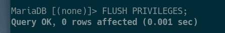 Now, flush the MariaDB privileges for the changes to take effect as follows:
