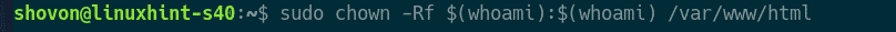 Now, change the owner and group of the /var/www/html directory to your login user with the following command:
