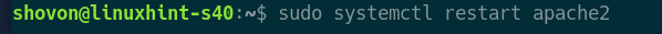For the changes to take effect, restart Apache 2 web server with the following command: