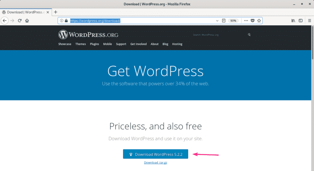 You can download WordPress from the official website of WordPress. Once the page loads, click on the Download WordPress button as marked in the screenshot below.