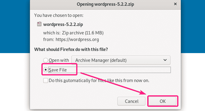Your browser should prompt you to save the file. Select Save File and click on OK.