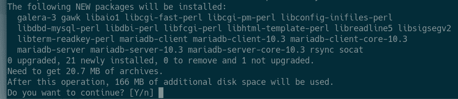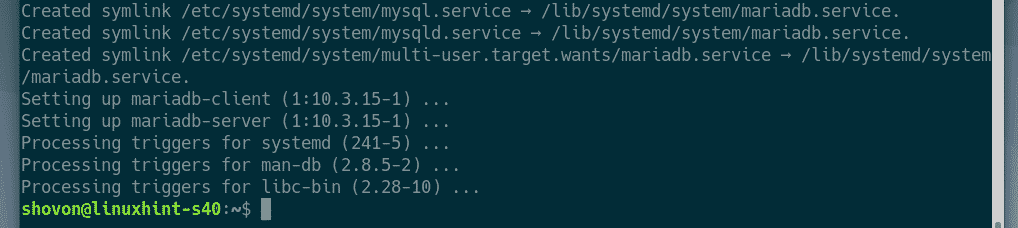 Now, install MariaDB server and client packages from the official package repository of Debian 10 with the following command: