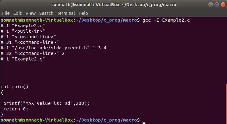 In Exapmle2.c, MAX is a macro. From the output, we observe that MAX is replaced by its value 200.