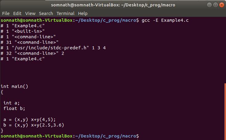 macro_name is a user-defined name of the macro. Pair of parenthesis has to put after the macro_name. No space is allowed between macro_name and parenthesis. We also can pass arguments in this type of macros.