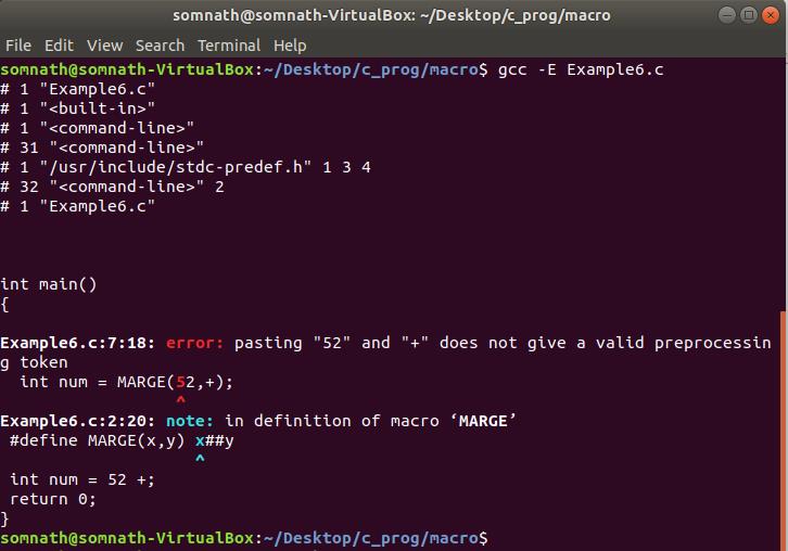 If we try to token pasting that does not generate a valid token, the C compiler gives an error or warning.
