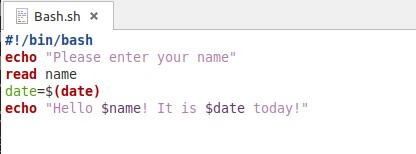 Now, we will try to tweak our bash script a little bit more to demonstrate to you the usage of the ‘date’ command. This command is simply used to determine the current date and time. To achieve this functionality, type the script shown in the image below in your bash file.