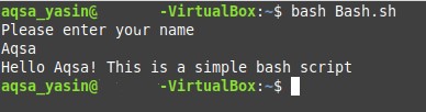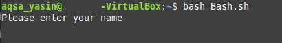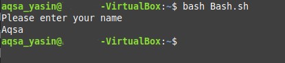 After making these changes, save the file and close it. Execute this bash file from the terminal. The terminal will ask you to enter your name. After entering your name, as soon as you press the Enter key, you will no longer be able to see any output in the terminal, as shown in the following image: