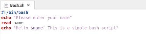 Now, we will try to make our bash script a little bit more interactive. That is, we will try to make the script capable of taking input from the user. To do this, open the bash file that you have just created and type the script shown in the following image in it.