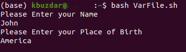 Here, you can replace VarFile with whatever name you have given to your Bash file.