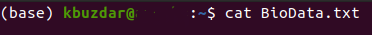 Once you have provided all the inputs, you will notice that a new text file named BioData.txt has been created in your Home folder. You can verify it by taking a look at the image shown below: