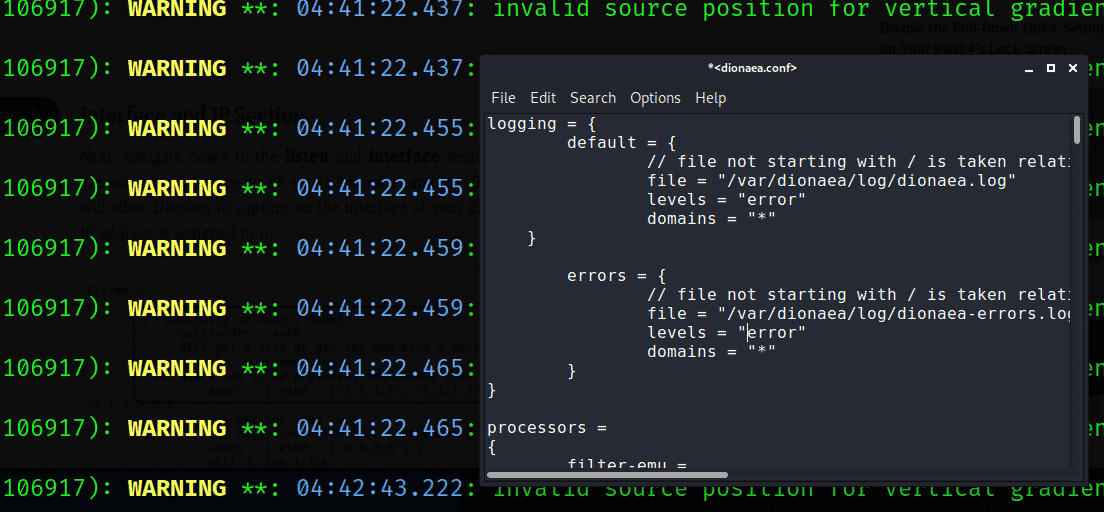 Open the Dionaea configuration file in this step.