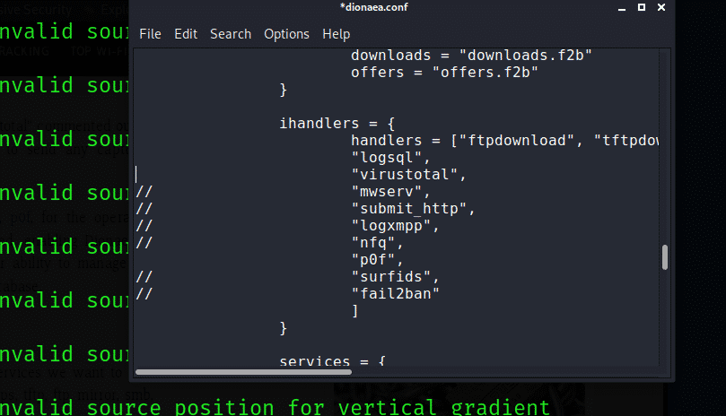 Open the Dionaea configuration file:
