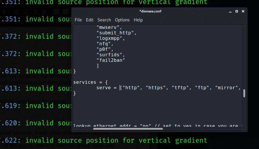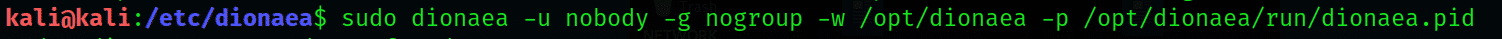 We have to run dionaea to find our new configuration. We can do this by typing: